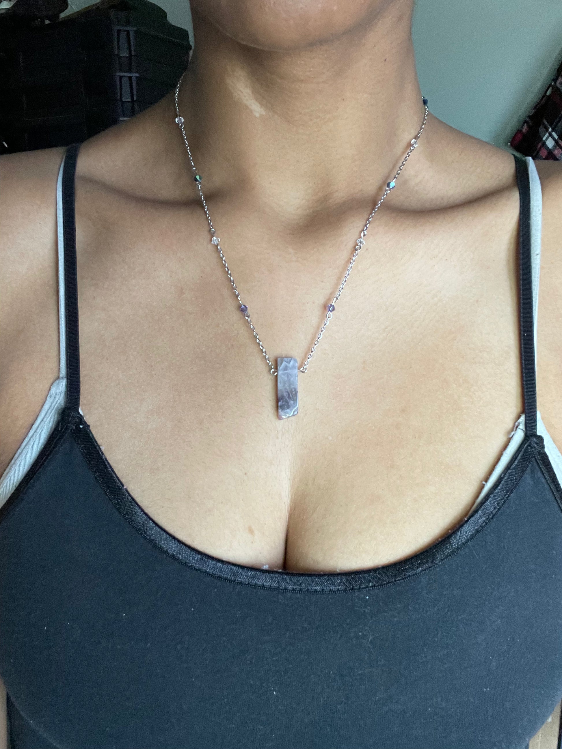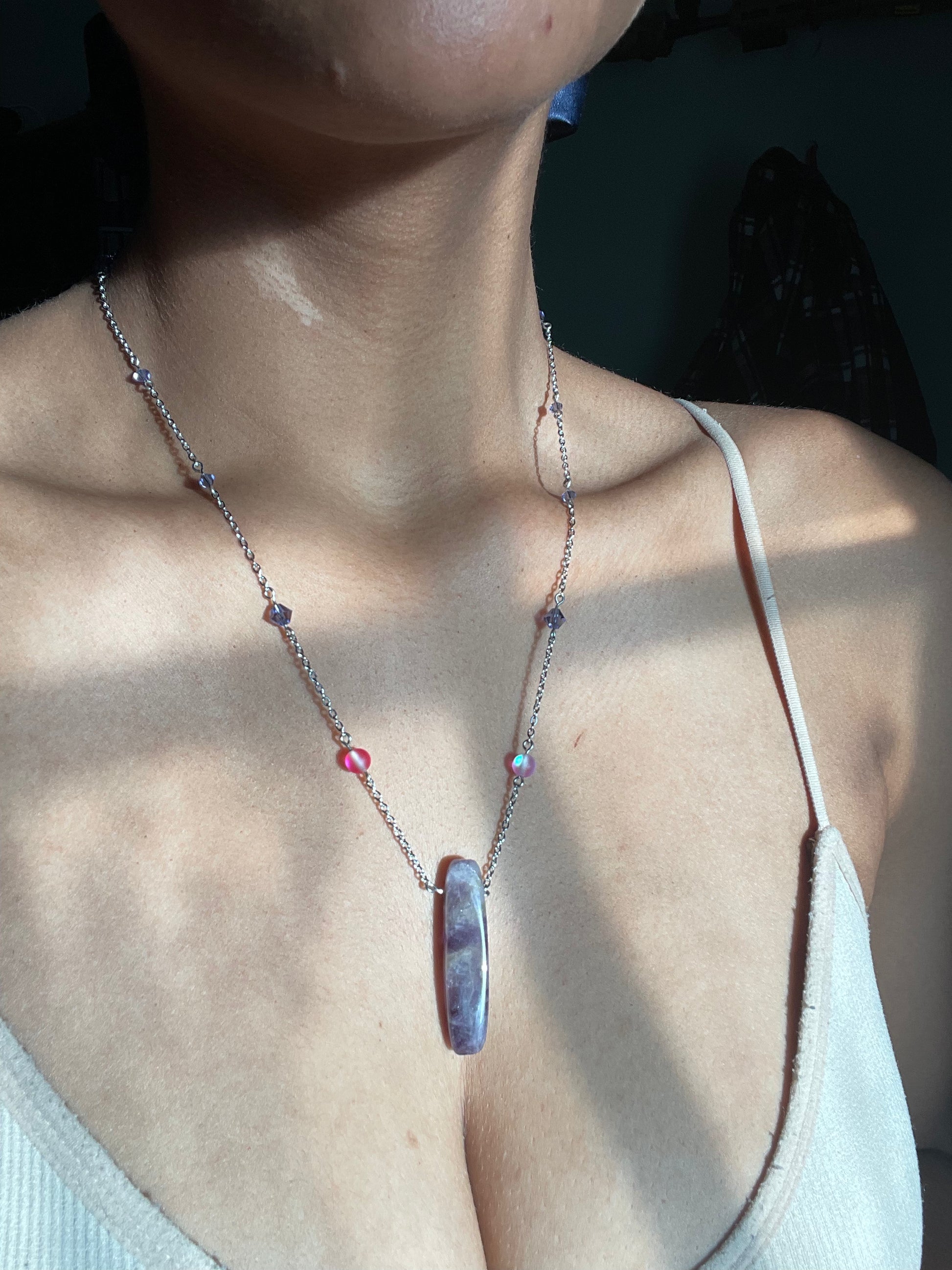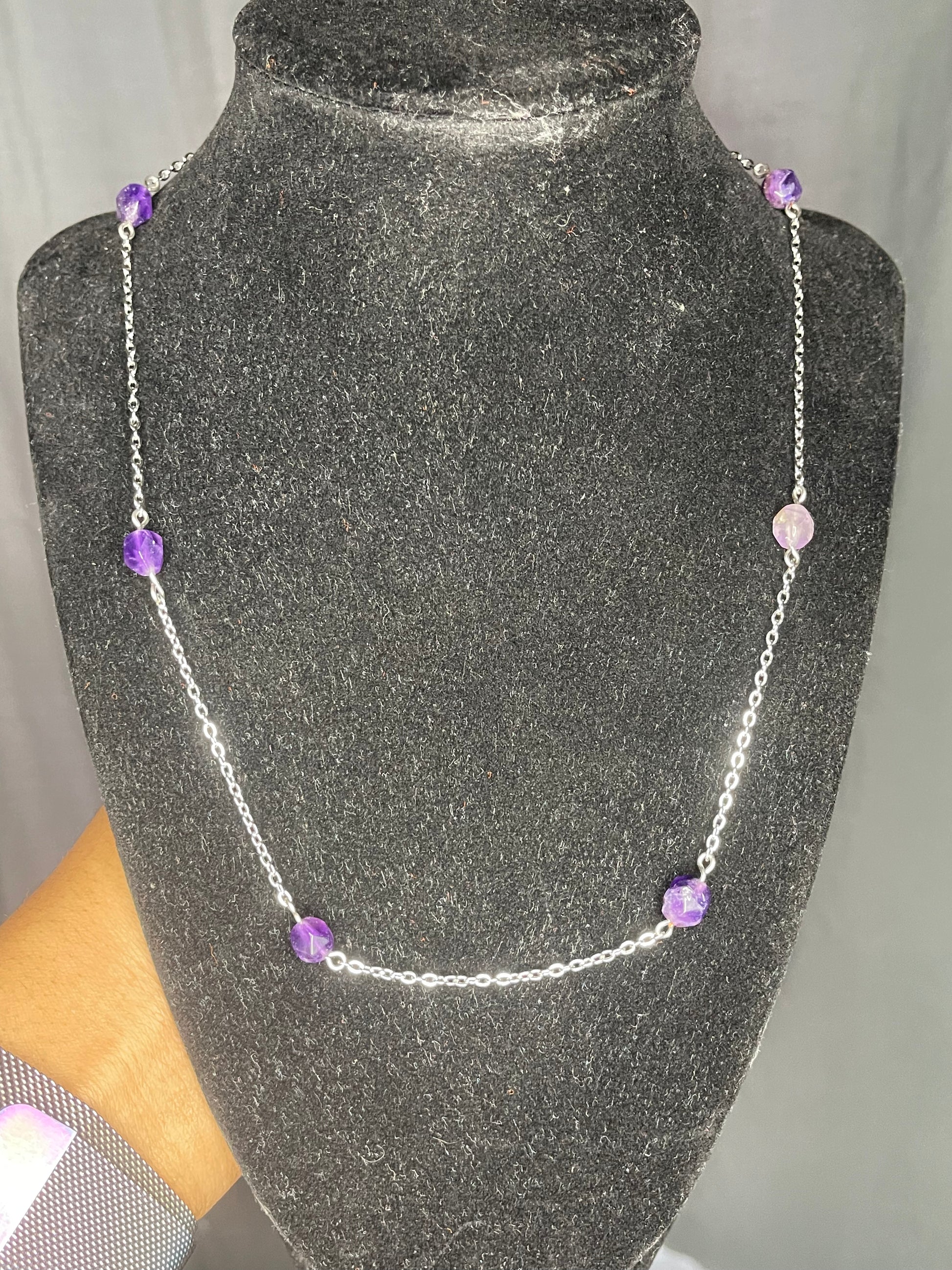 Behold a piece of jewelry fit for an enchantress! Our Amethyst Satellite Chokers are handmade with divine materials: amethyst crystals, Tanzanite-colored Preciosa crystals, purple mermaid glass beads, and more. Each satellite choker is made from titanium-plated copper wire to keep it strong and durable. To make them even more extraordinary, we added a stainless steel chain to hold the necklace in place. These heavenly pieces are one-of-a-kind and perfect for anyone looking to add a little bit of flair to their wardrobe. Don't wait! Get your very own Amethyst Satellite Choker today and channel your inner goddess!