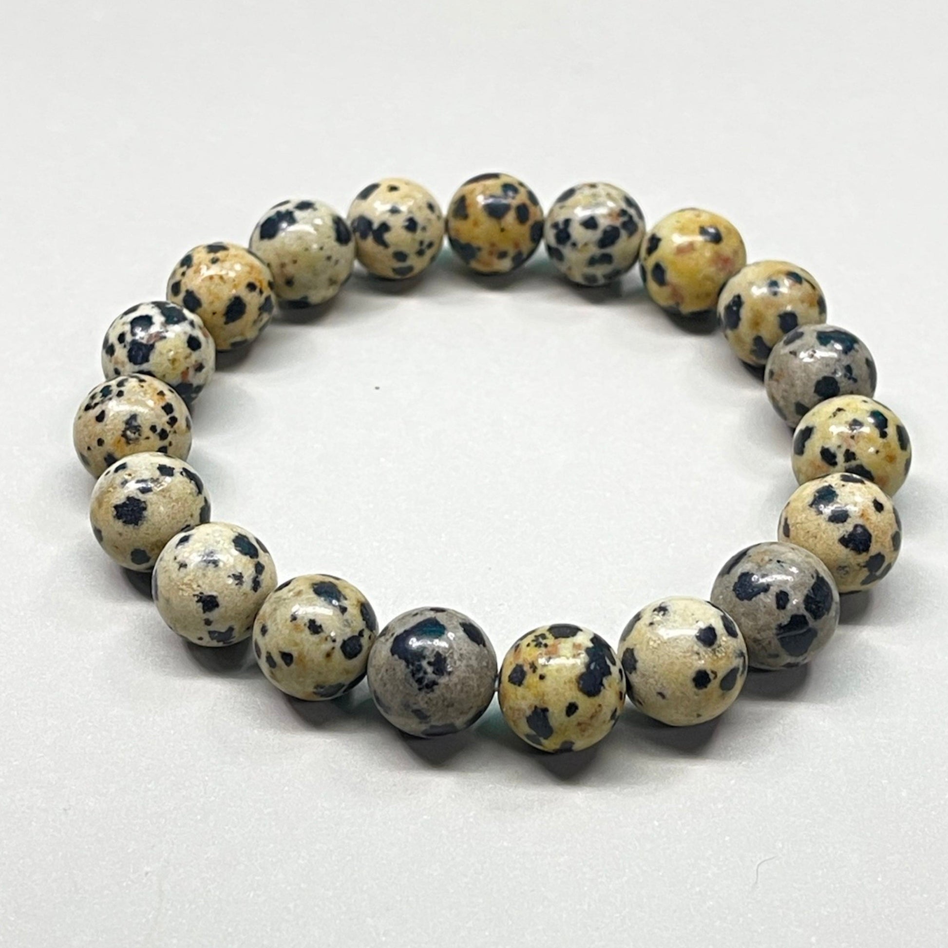Introducing our newest arrivals - dalmatian stone bracelets! These gorgeous bracelets are perfect for adding a touch of whimsy and fun to your outfit. But don't be fooled by their cute appearance - these bracelets are said to have strong protective properties. Dalmation stone is rumored to sound a warning when danger is near, making it the perfect companion for those who may be treading into new waters or starting something new. Available in 2 sizes, 8mm and 10mm, our dalmatian stone bracelets are sure to become your new go-to accessory. So don't wait - grab one before they're all gone!