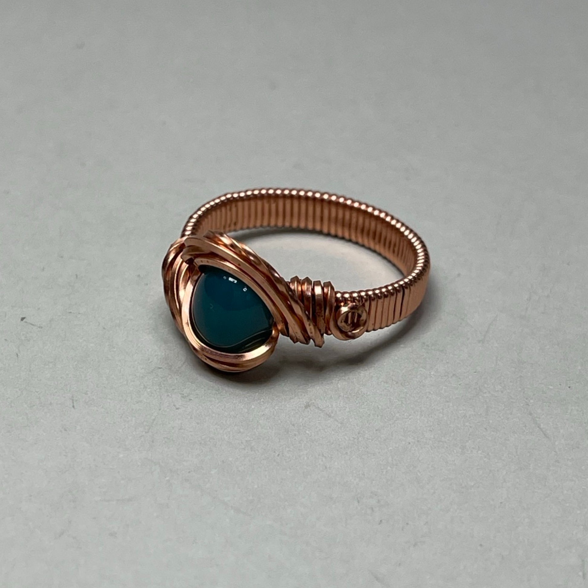 Green Chalcedony Copper Ring, Size 10