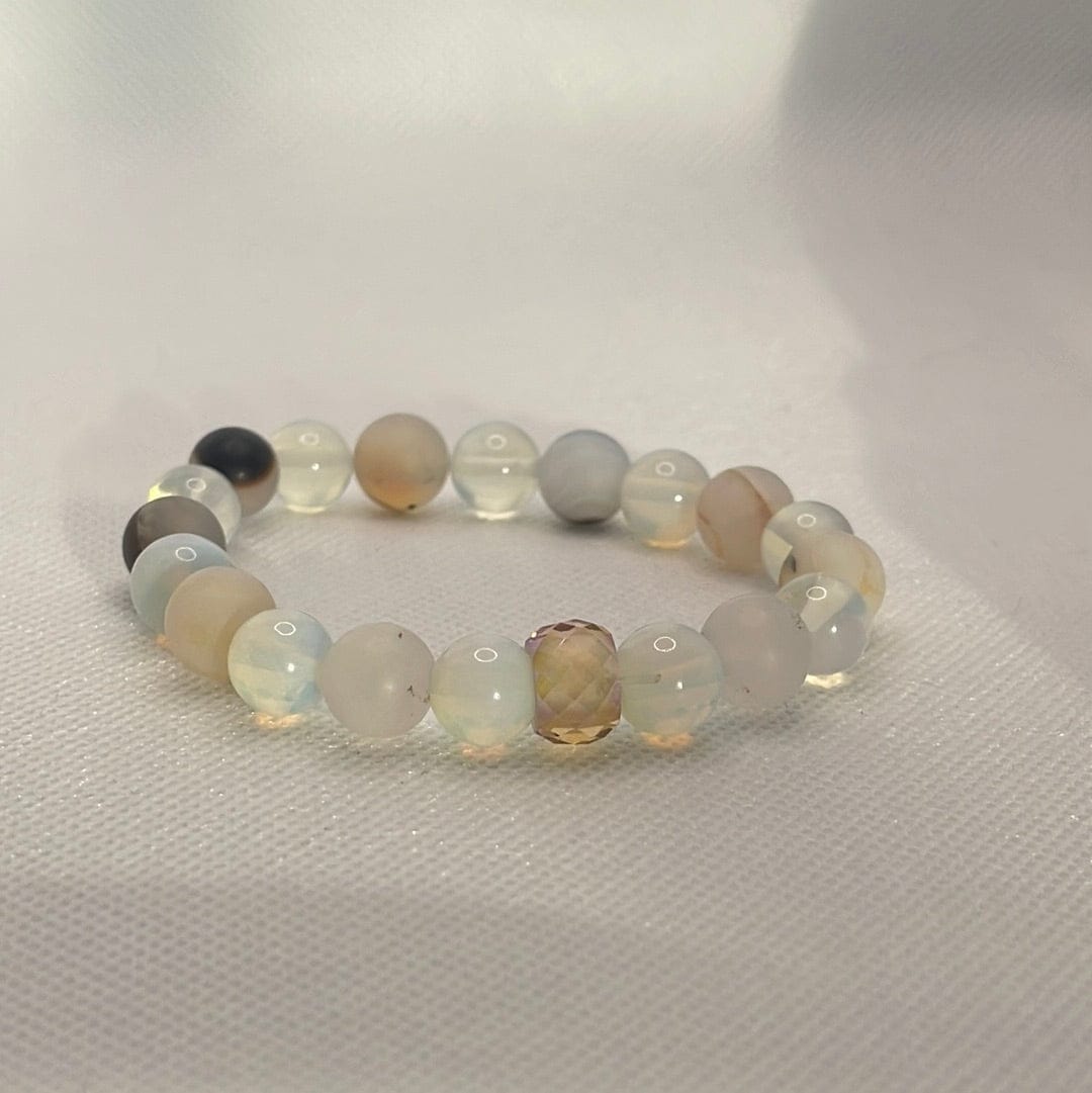 these bracelets were made out of pure intuition. I just let the beads talk and put them how they wanted to be put together. These bracelets are made with stretch material so one size will fit most.