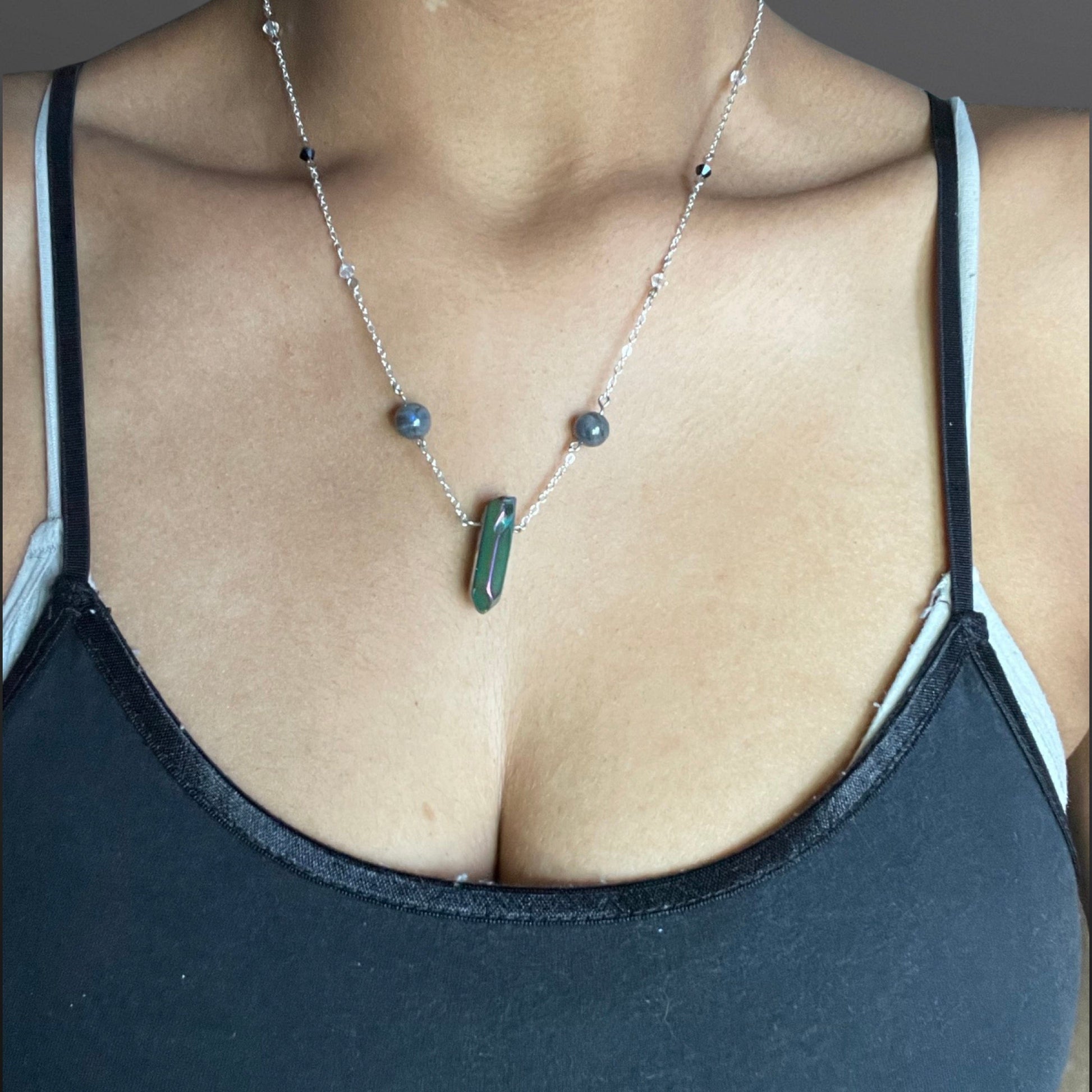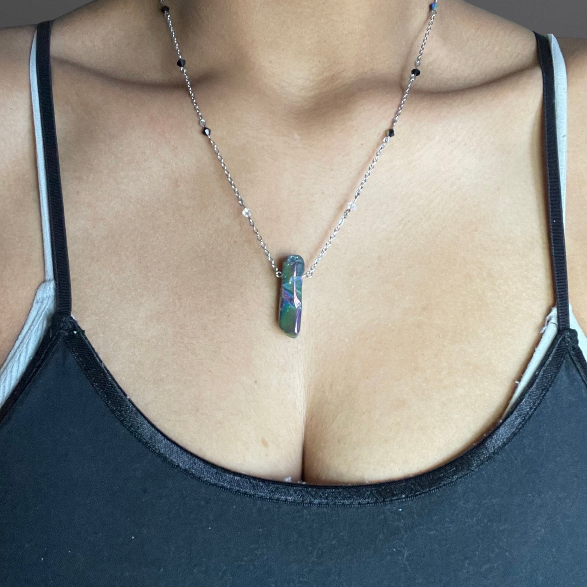 Ready to harness the power of crystals and make a statement? Meet our Rainbow Aura Quartz Satellite Chokers! Carefully crafted with rainbow aura quartz, Preciosa crystals, titanium plated copper wire, and stainless steel chain, these chokers offer the perfect combination of beauty and energy that you can wear anywhere. With its bold color palette and sleek design, it's sure to grab attention and turn heads. The Rainbow Aura Quartz is known for its vibrational energy that helps bring clarity, hope, joy, insight, and spiritual growth into your life – while always looking fashionable. Plus, they go with just about any look- day or night. So if you're ready to uplevel your style and set some serious positive vibration free- the Rainbow Aura Quartz Satellite Choker is the piece for you!