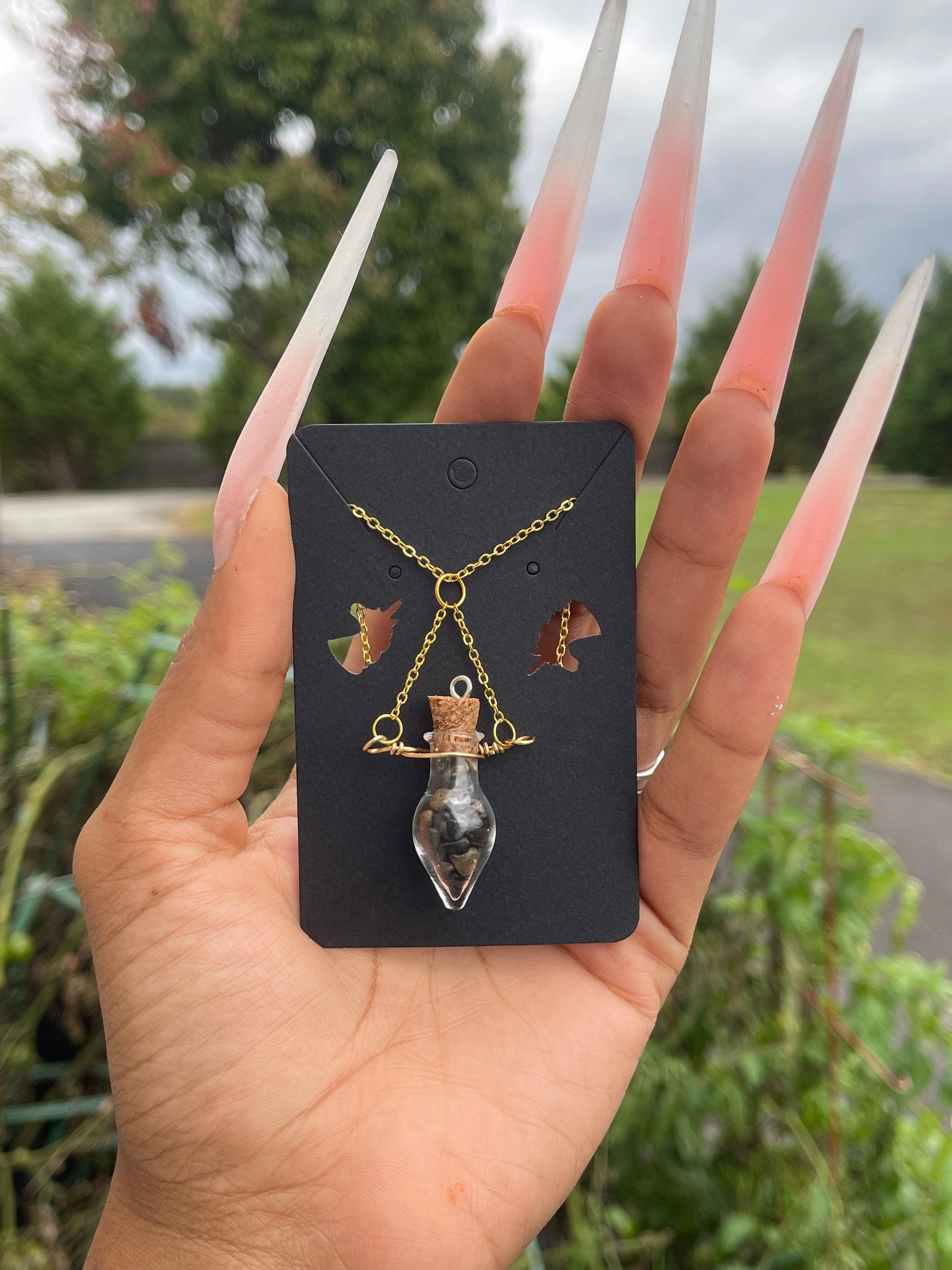 Each Crystal Spell Jar is unique and handmade with love. Whether you're looking for a little extra protection or just want to add some sparkle to your outfit, these necklaces are sure to do the trick. So go ahead and treat yourself (or a friend!) to a little bit of magic. Crystal Spell Jars are available now!