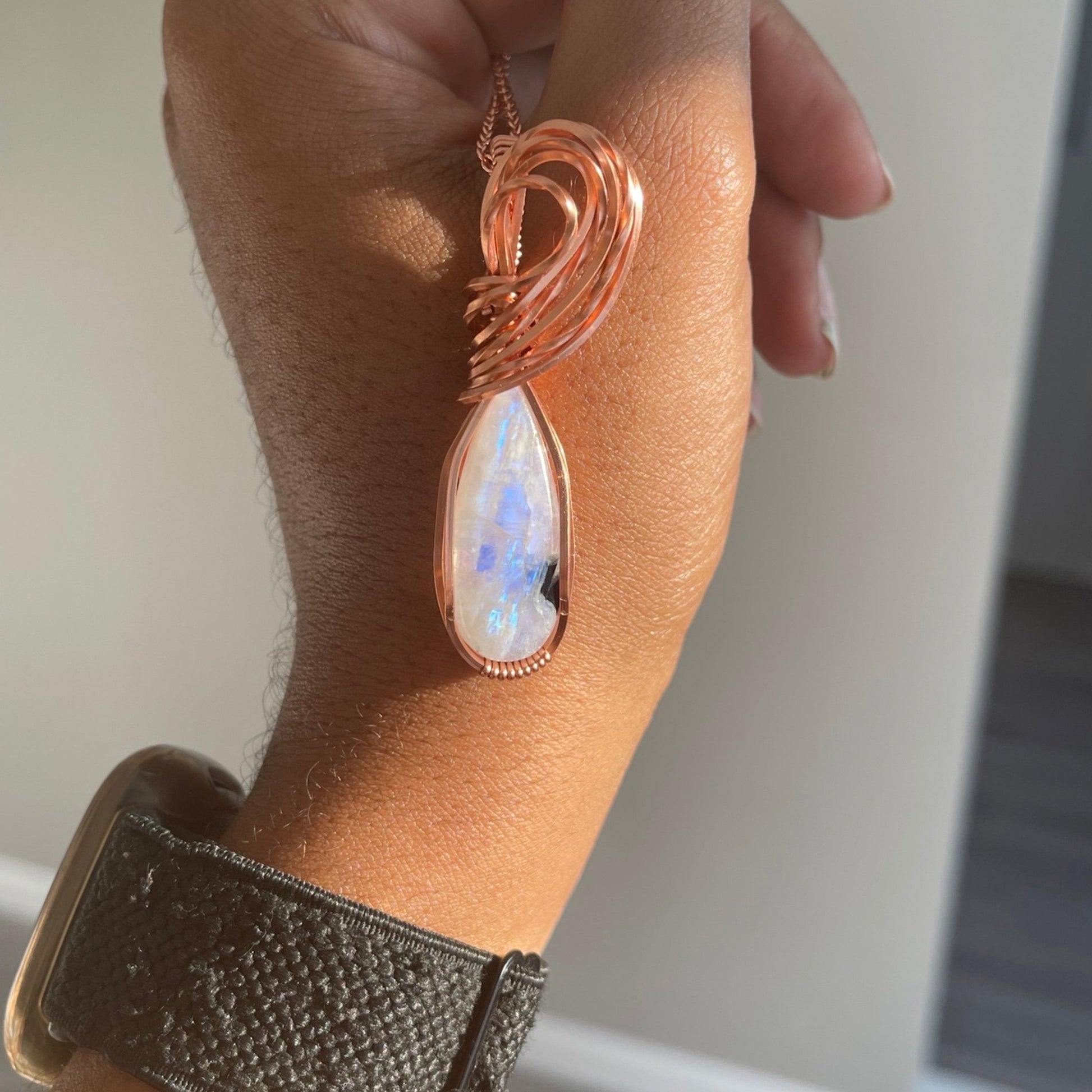 Rainbow Moonstone Copper Pendant
